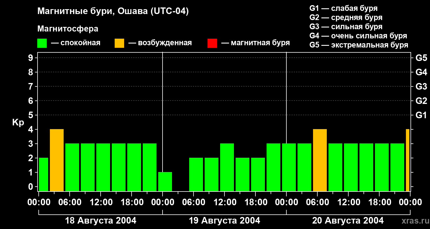 Магнитные бури в Ошаве — 20 августа 2004 года