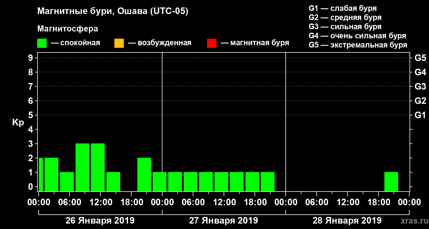 Магнитные бури в Ошаве в январе 2019 года