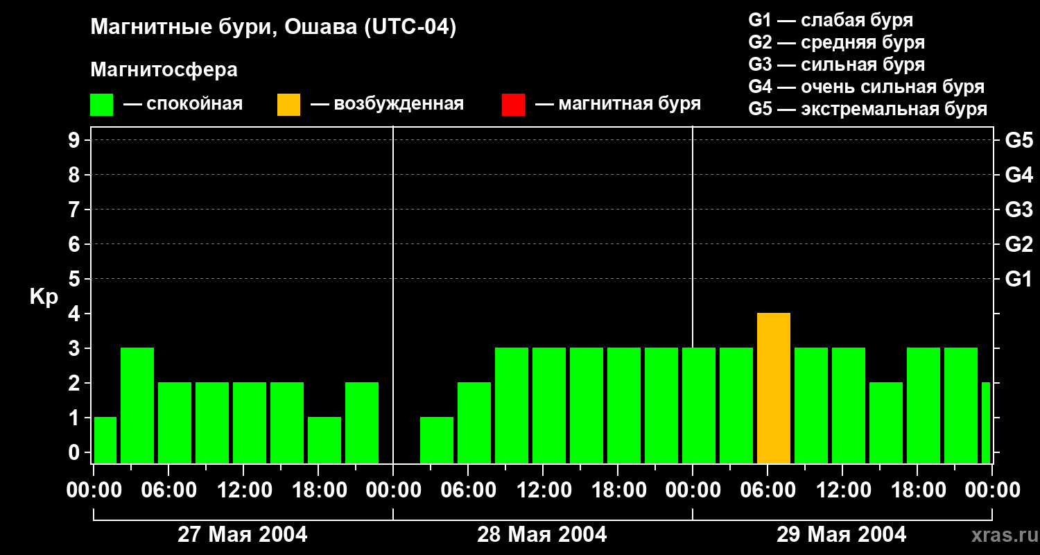 Магнитные бури в Ошаве — 29 мая 2004 года