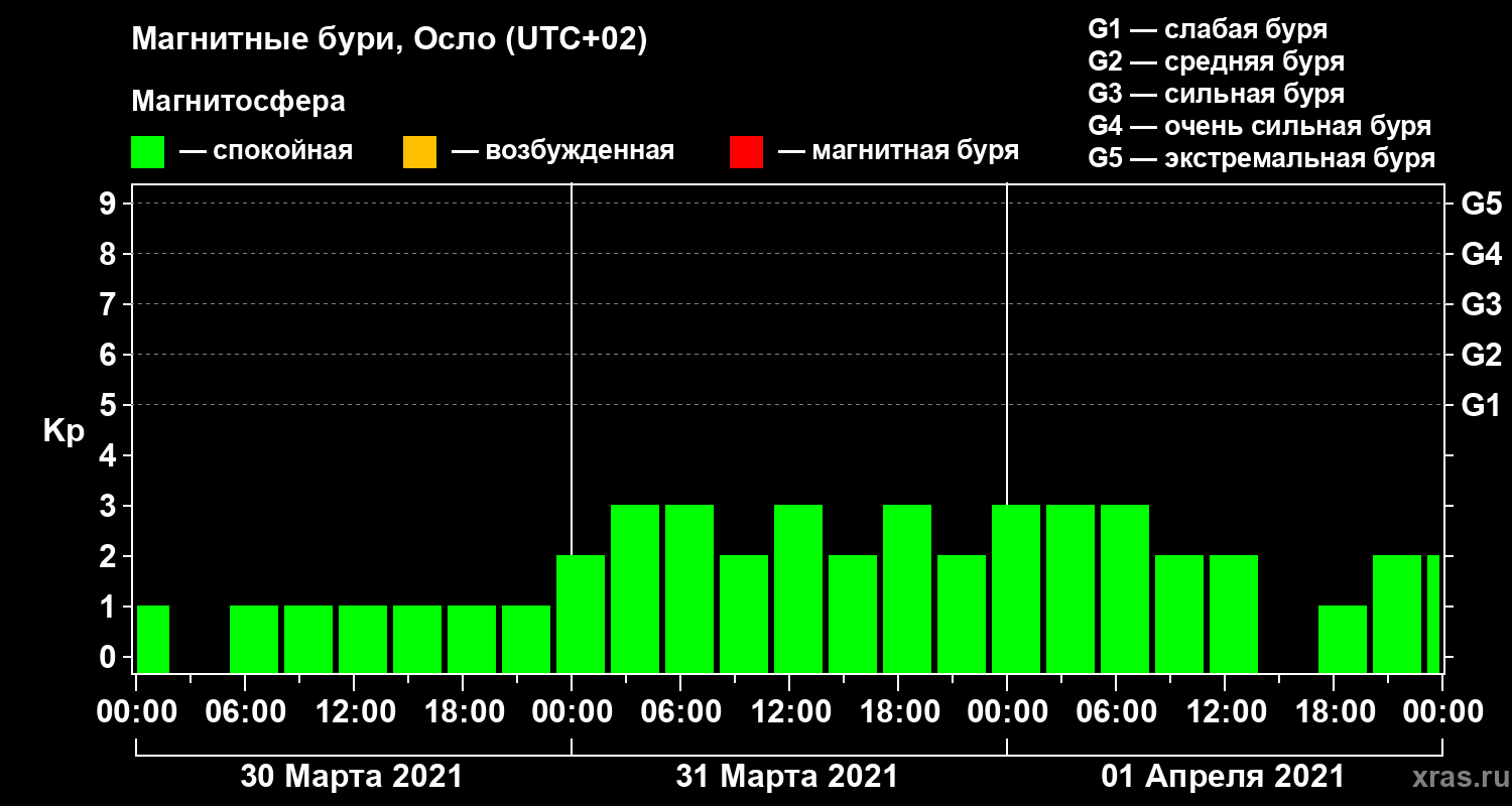 Магнитные бури Осло 1 апреля 2021 года