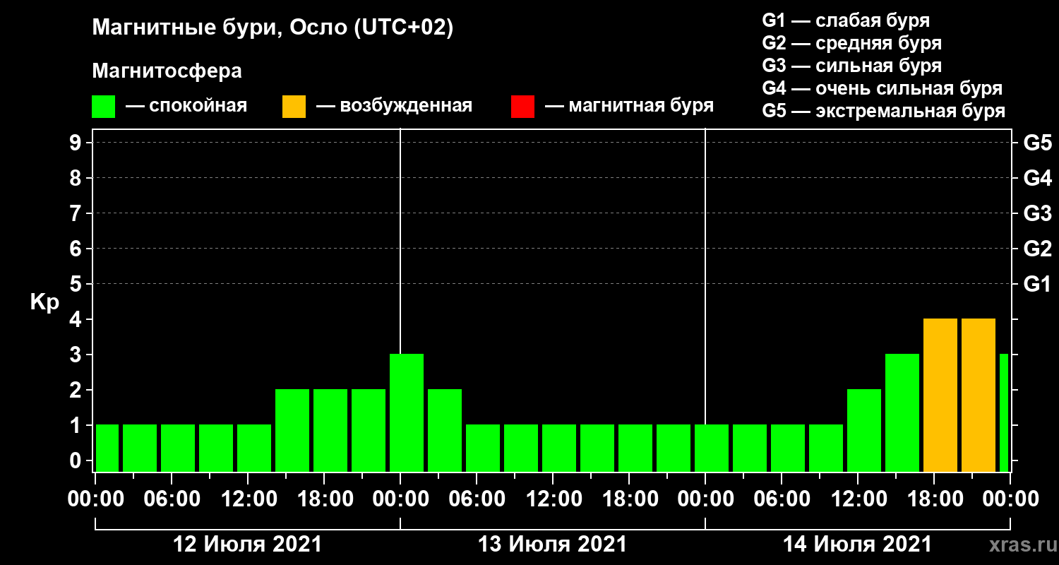 Магнитные бури Осло 14 июля 2021 года