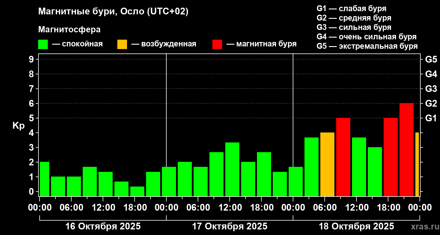 Магнитные бури Осло 18 октября 2025 года