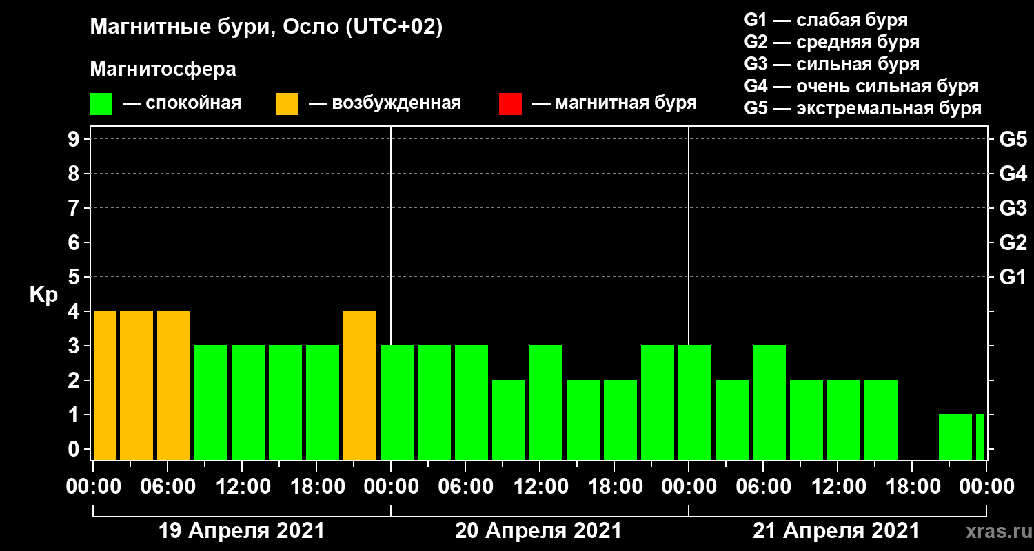 Магнитные бури Осло 21 апреля 2021 года