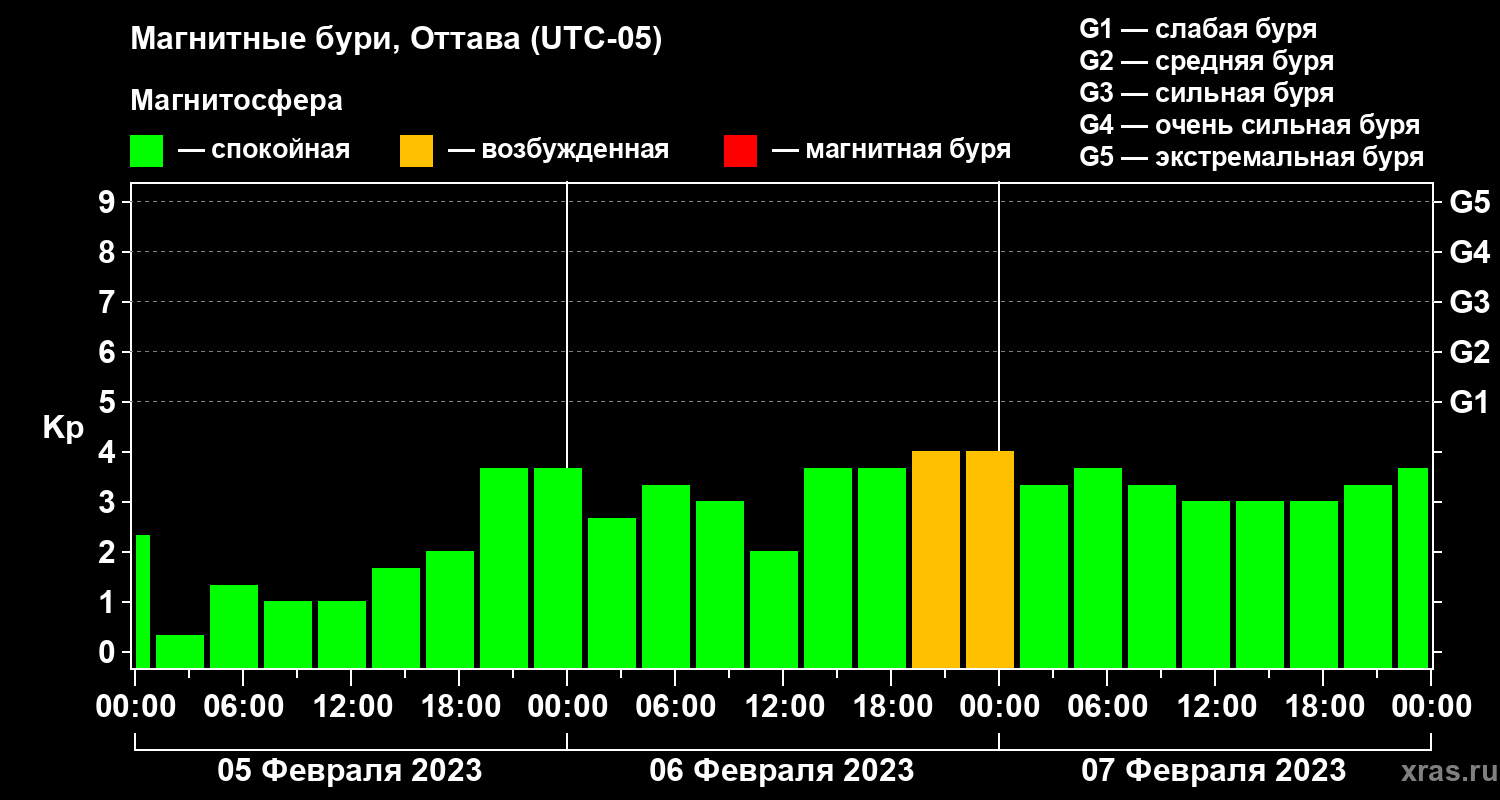 Магнитные бури в Оттаве 7 февраля 2023 года