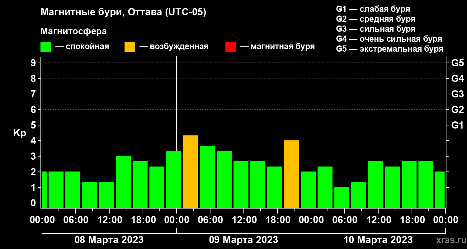 Магнитные бури в Оттаве — 10 марта 2023 года