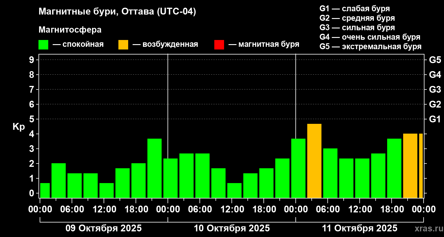 Магнитные бури в Оттаве — 11 октября 2025 года