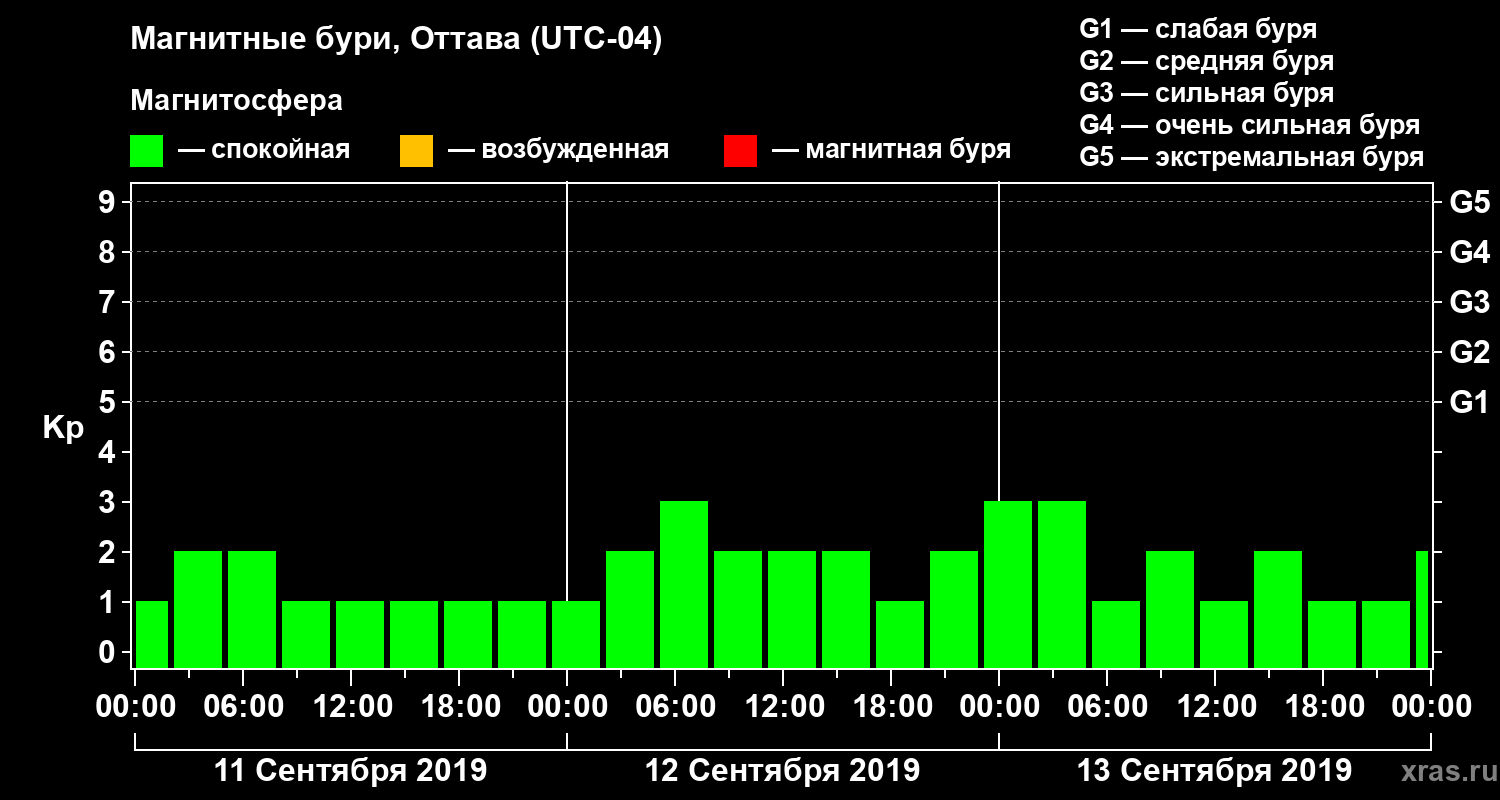 Магнитные бури в Оттаве 13 сентября 2019 года