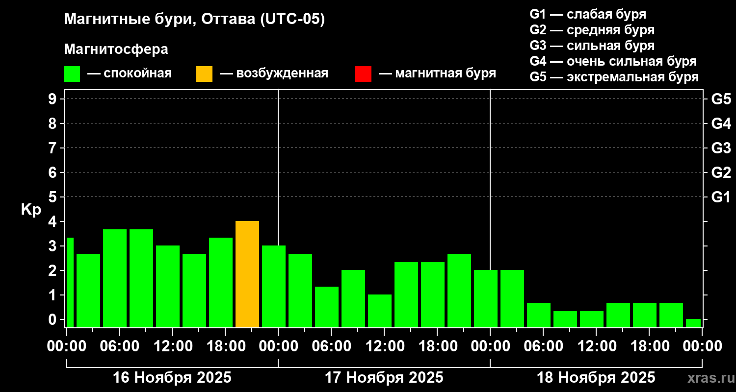 Магнитные бури в Оттаве — 18 ноября 2025 года