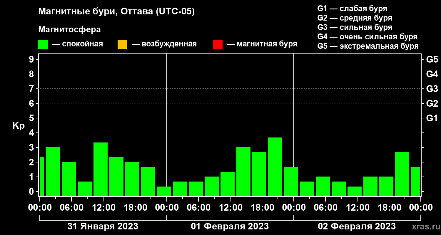 Магнитные бури в Оттаве 2 февраля 2023 года