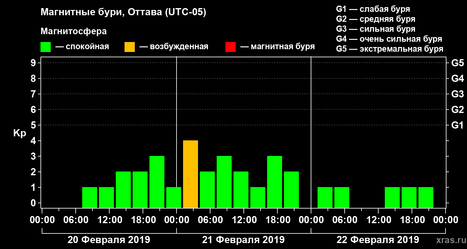 Магнитные бури в Оттаве 22 февраля 2019 года