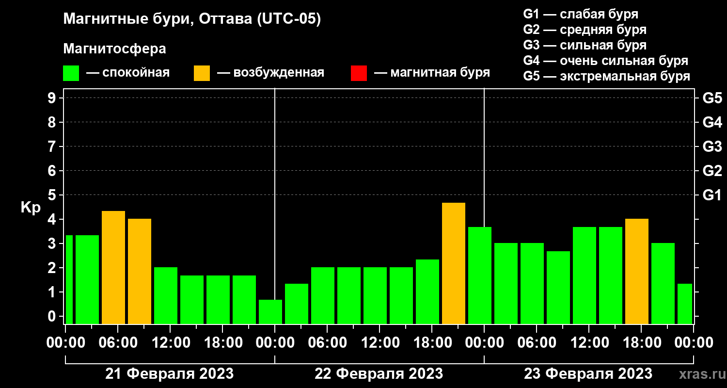 Магнитные бури в Оттаве 23 февраля 2023 года
