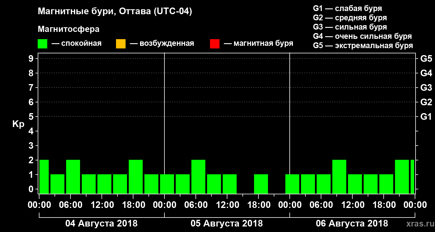 Магнитные бури в Оттаве — 6 августа 2018 года