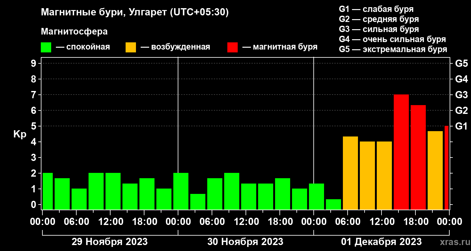 Магнитные бури в Улгарете — 1 декабря 2023 года