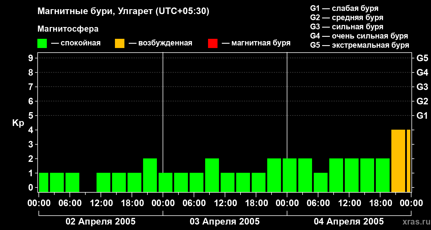 Магнитные бури в Улгарете — 4 апреля 2005 года