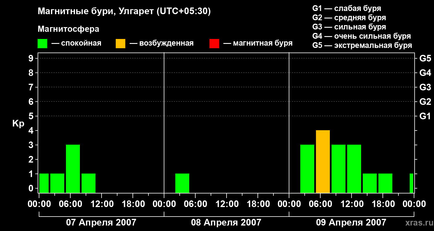 Магнитные бури в Улгарете — 9 апреля 2007 года