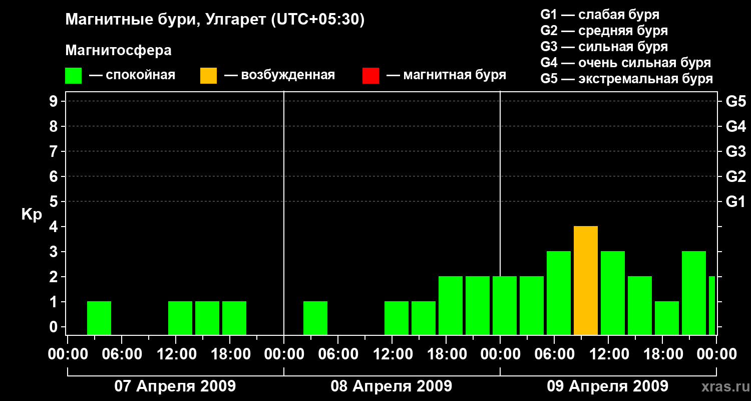 Магнитные бури в Улгарете — 9 апреля 2009 года