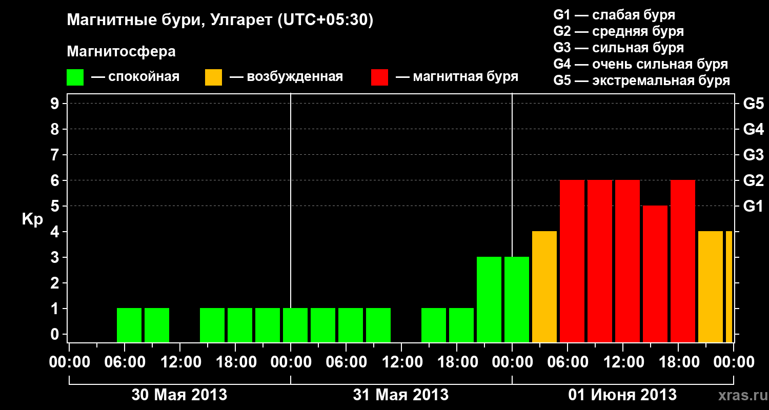 Магнитные бури в Улгарете — 1 июня 2013 года