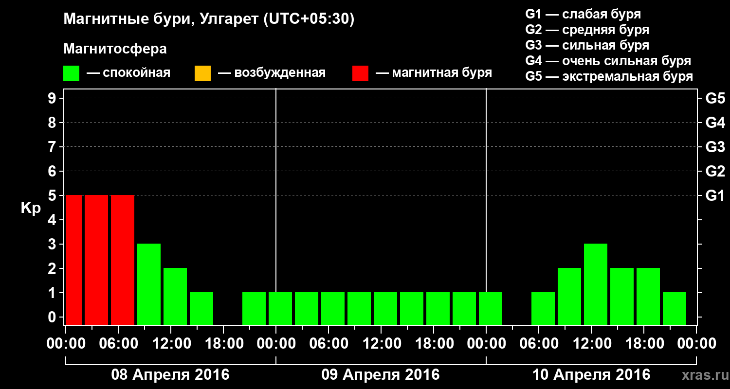 Магнитные бури в Улгарете — 10 апреля 2016 года