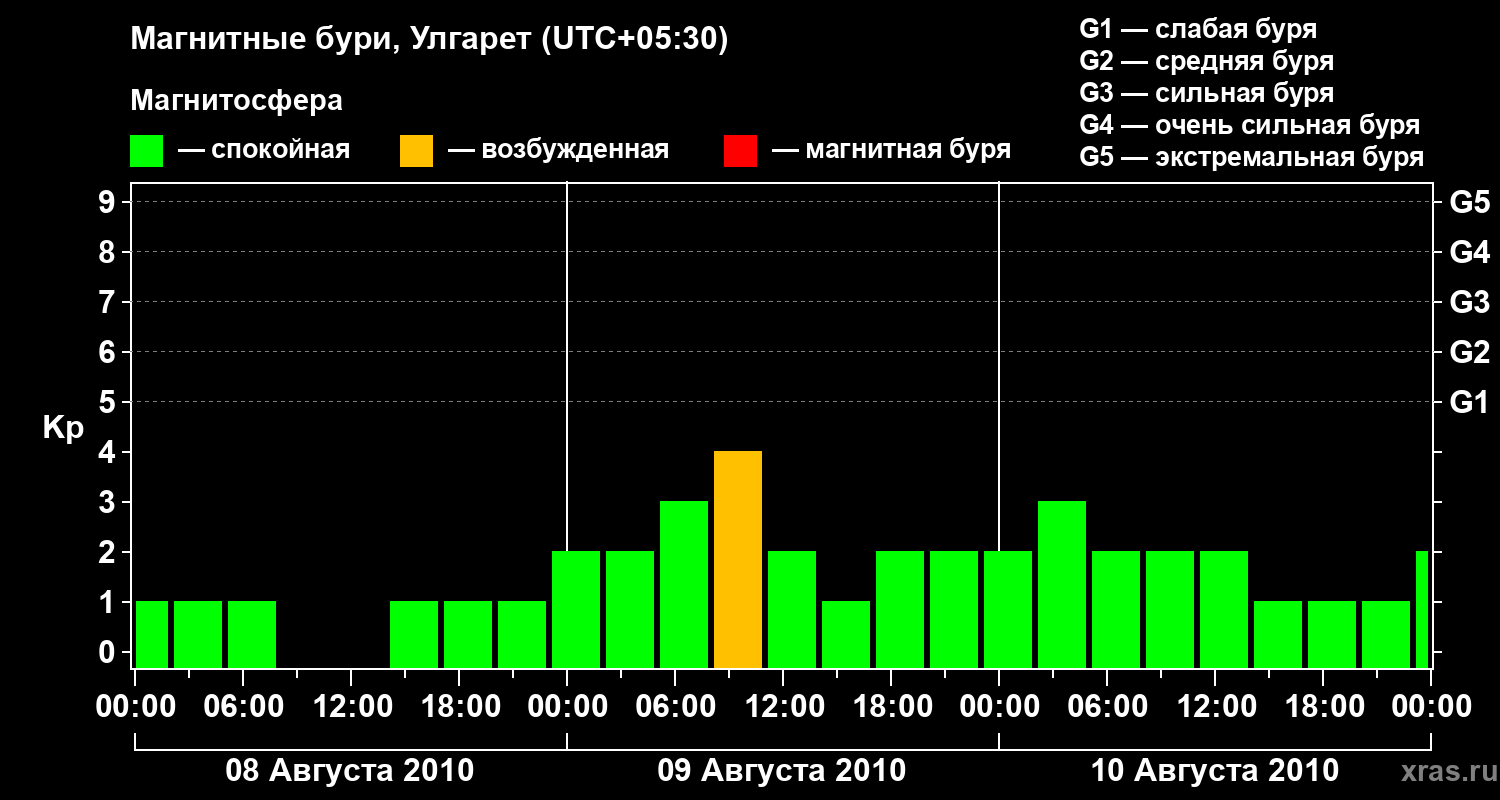 Магнитные бури в Улгарете — 10 августа 2010 года