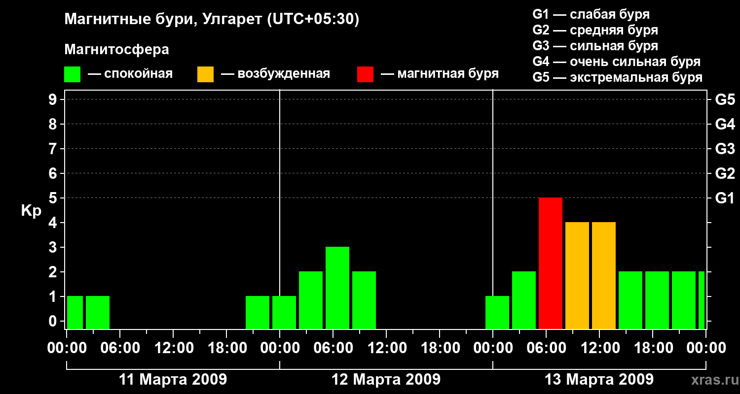 Магнитные бури в Улгарете — 13 марта 2009 года
