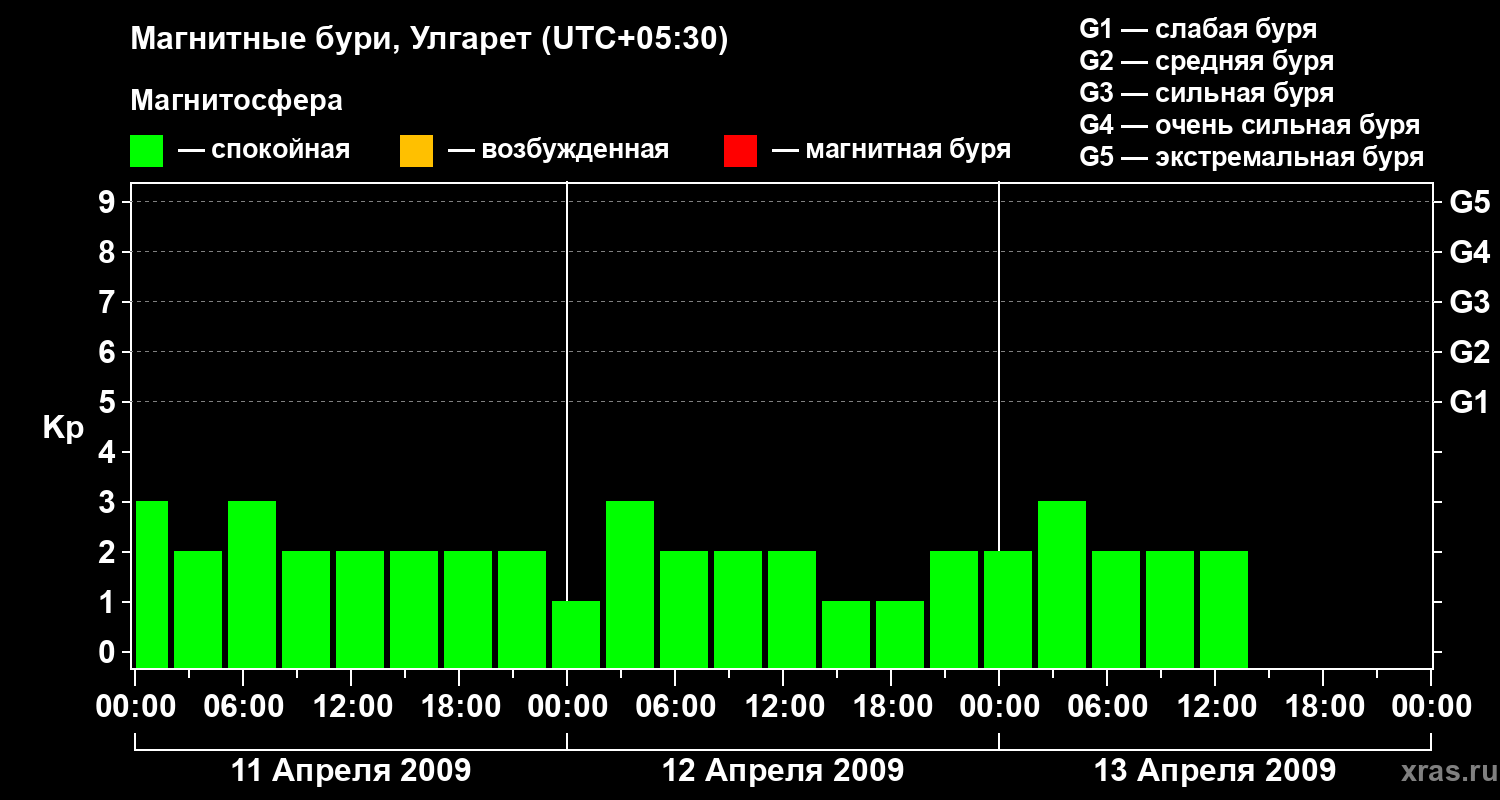 Магнитные бури в Улгарете — 13 апреля 2009 года