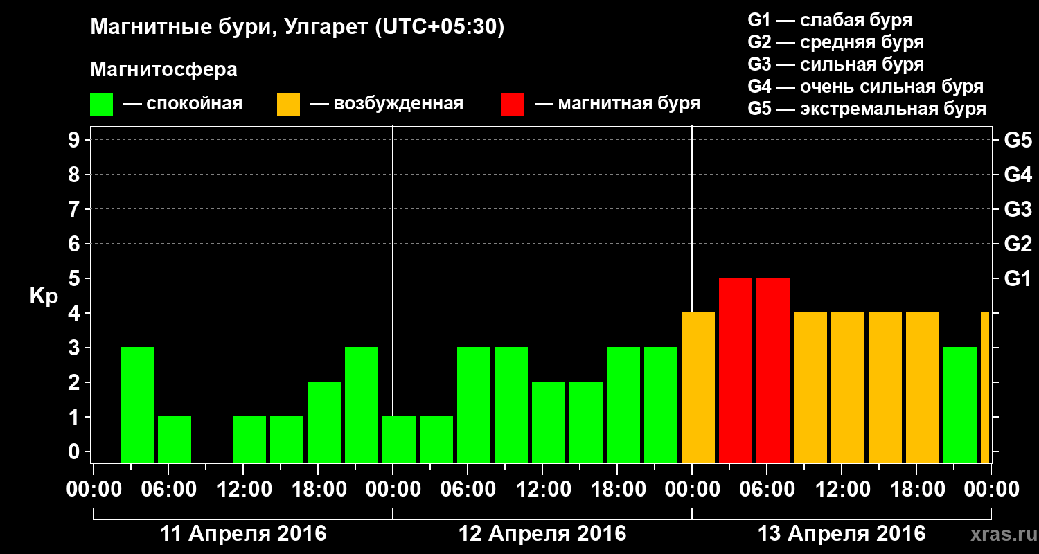 Магнитные бури в Улгарете — 13 апреля 2016 года