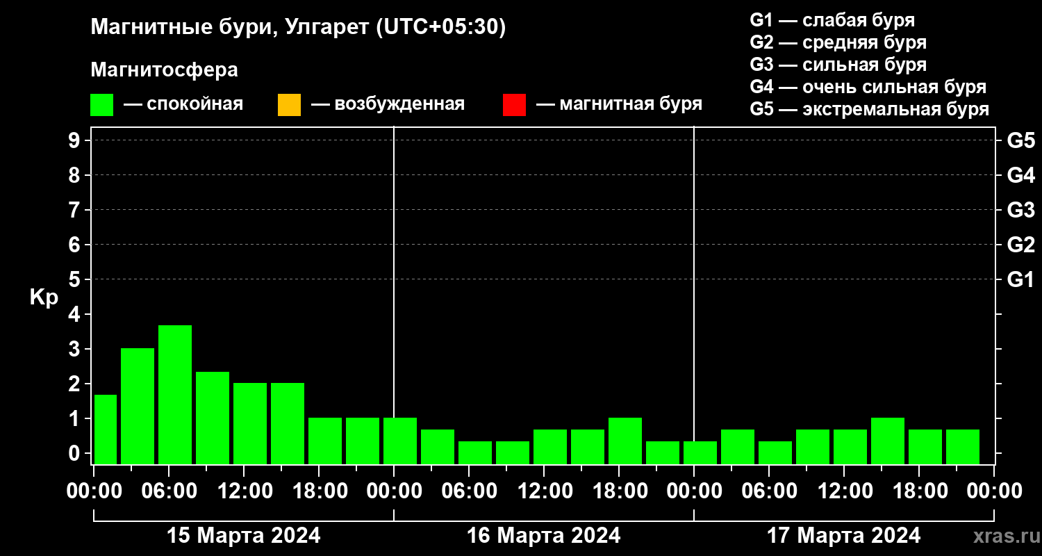 Магнитные бури в Улгарете — 17 марта 2024 года