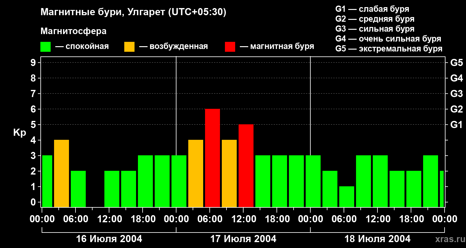Магнитные бури в Улгарете — 18 июля 2004 года