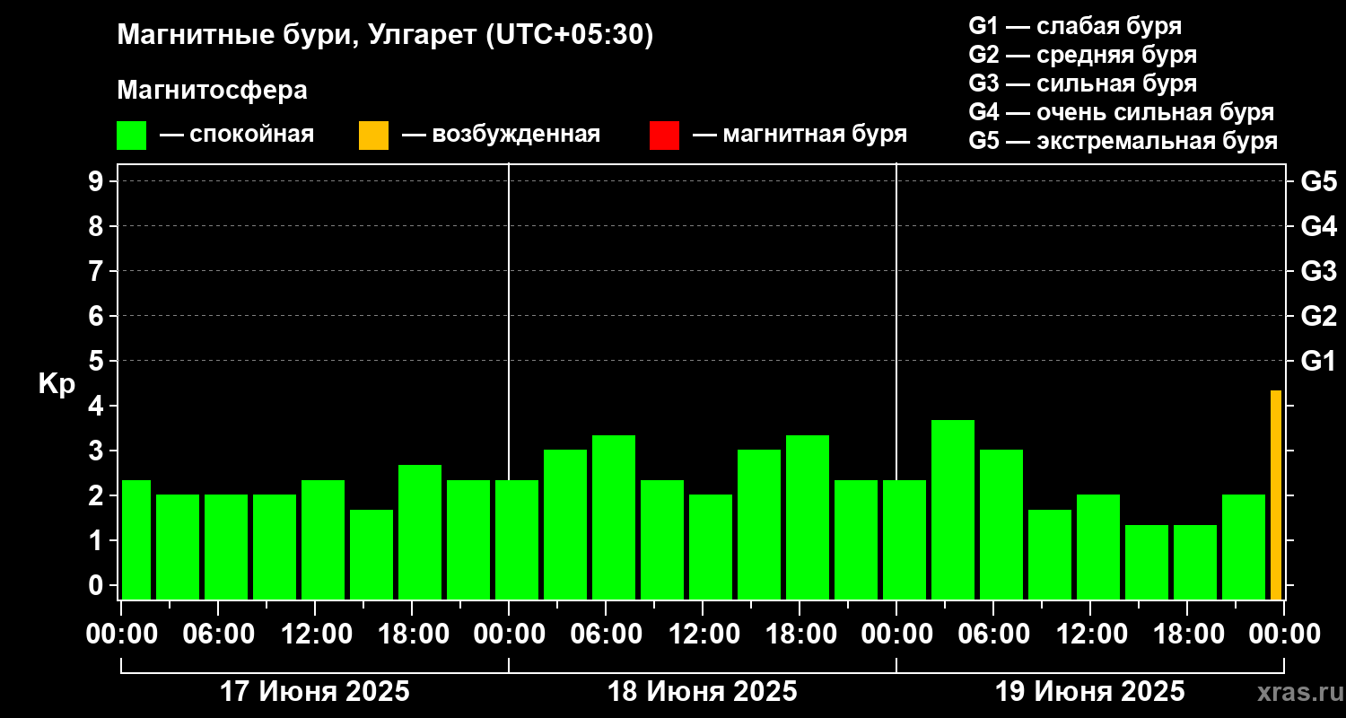 Магнитные бури в Улгарете — 19 июня 2025 года