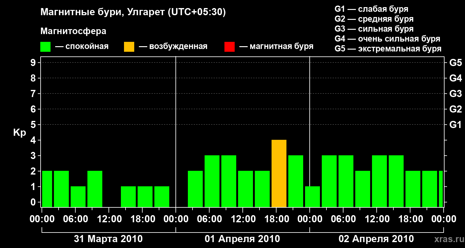 Магнитные бури в Улгарете — 2 апреля 2010 года
