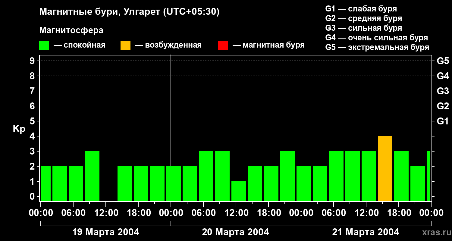 Магнитные бури в Улгарете — 21 марта 2004 года