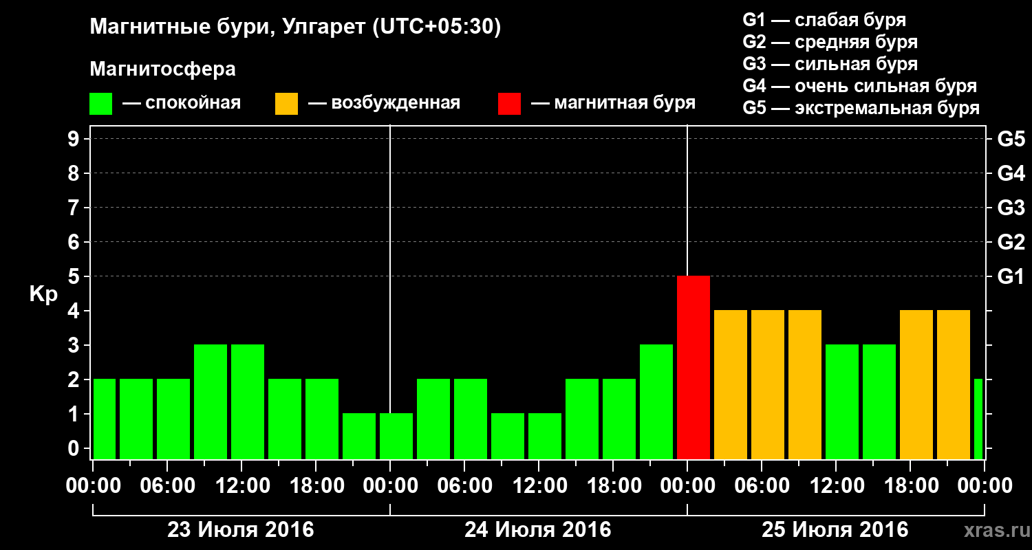 Магнитные бури в Улгарете — 25 июля 2016 года