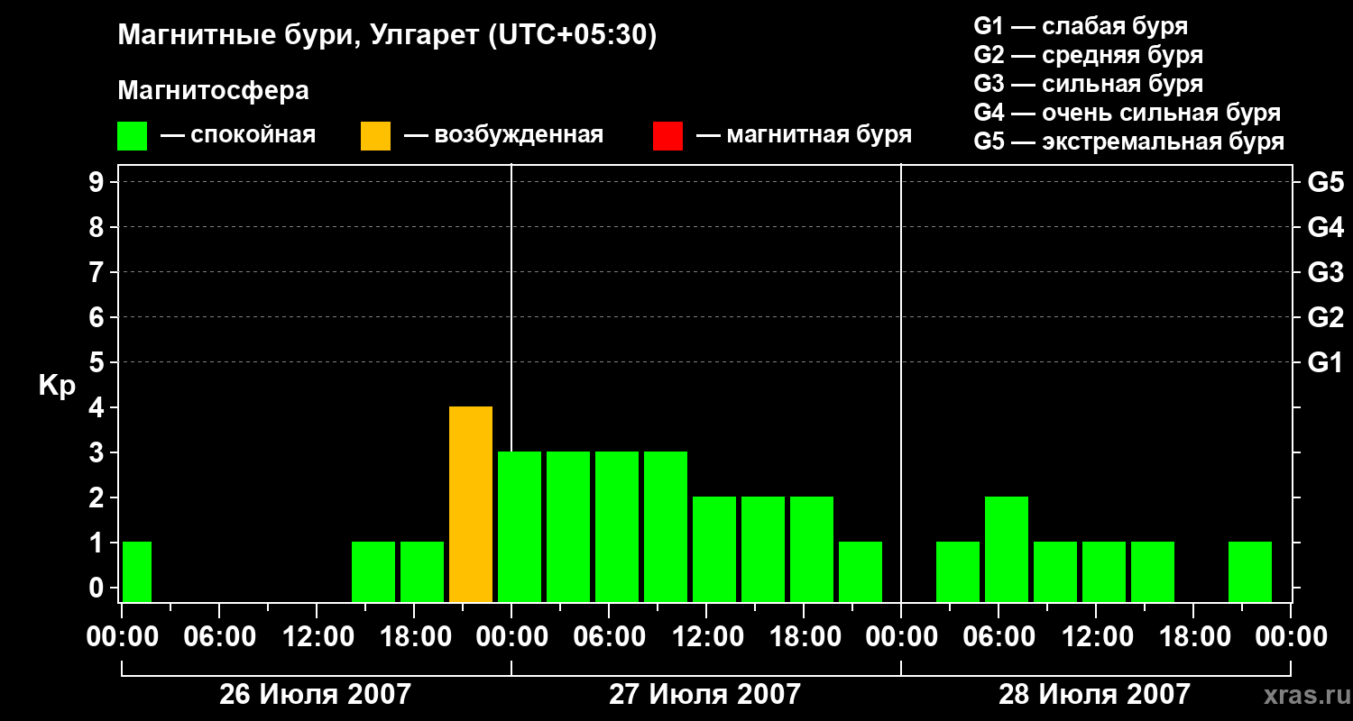 Магнитные бури в Улгарете — 28 июля 2007 года