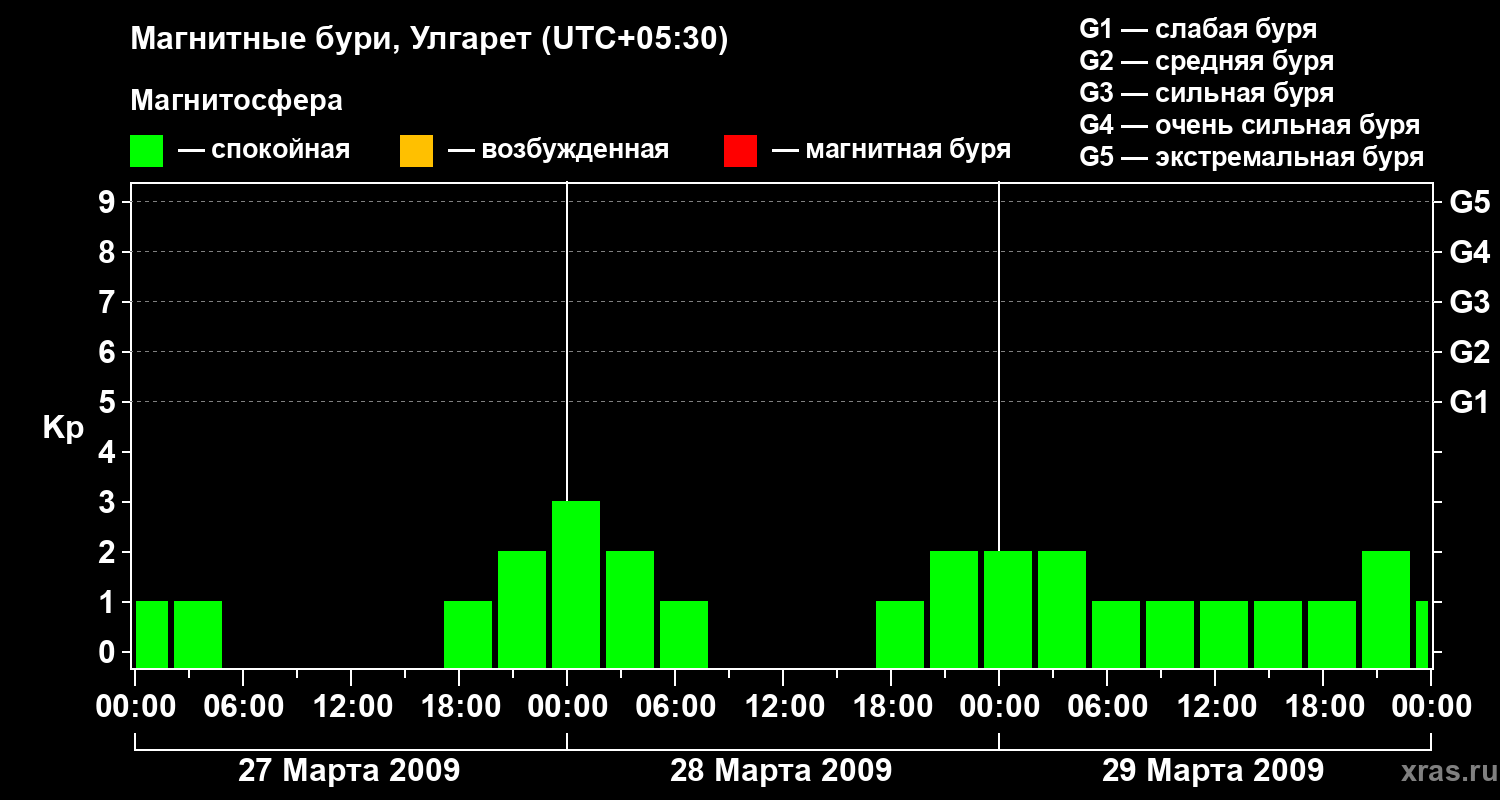 Магнитные бури в Улгарете — 29 марта 2009 года