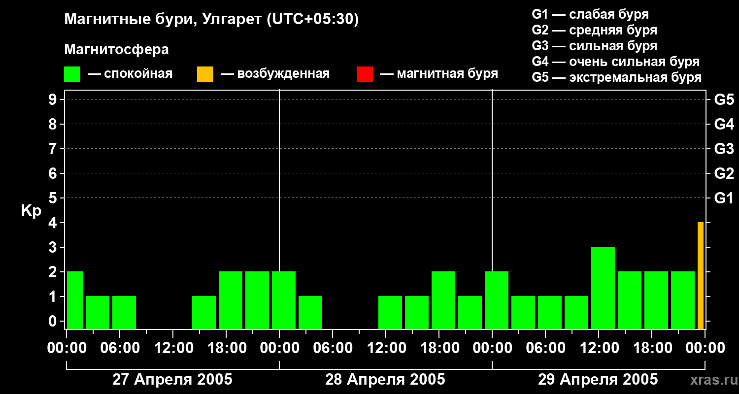 Магнитные бури в Улгарете — 29 апреля 2005 года