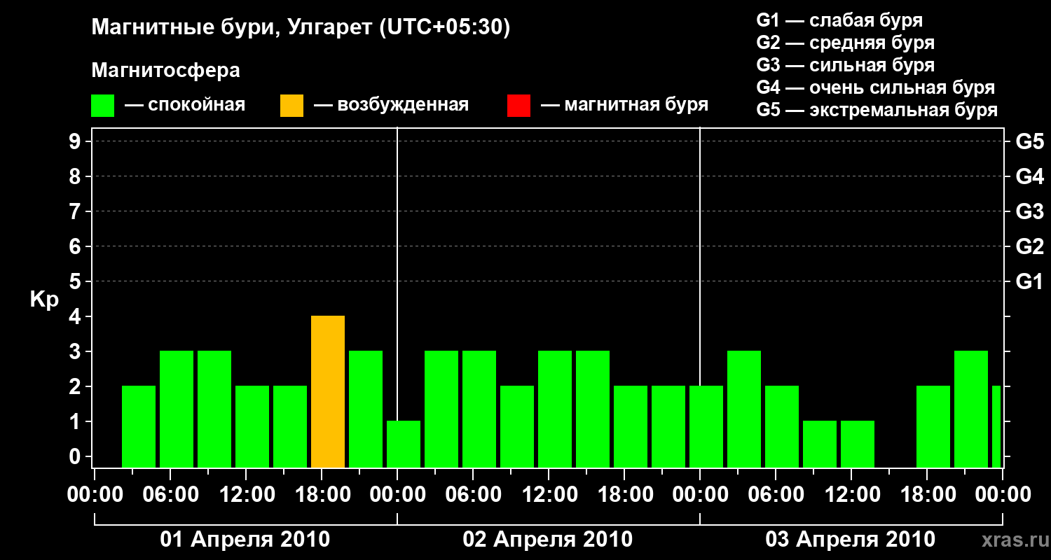 Магнитные бури в Улгарете — 3 апреля 2010 года