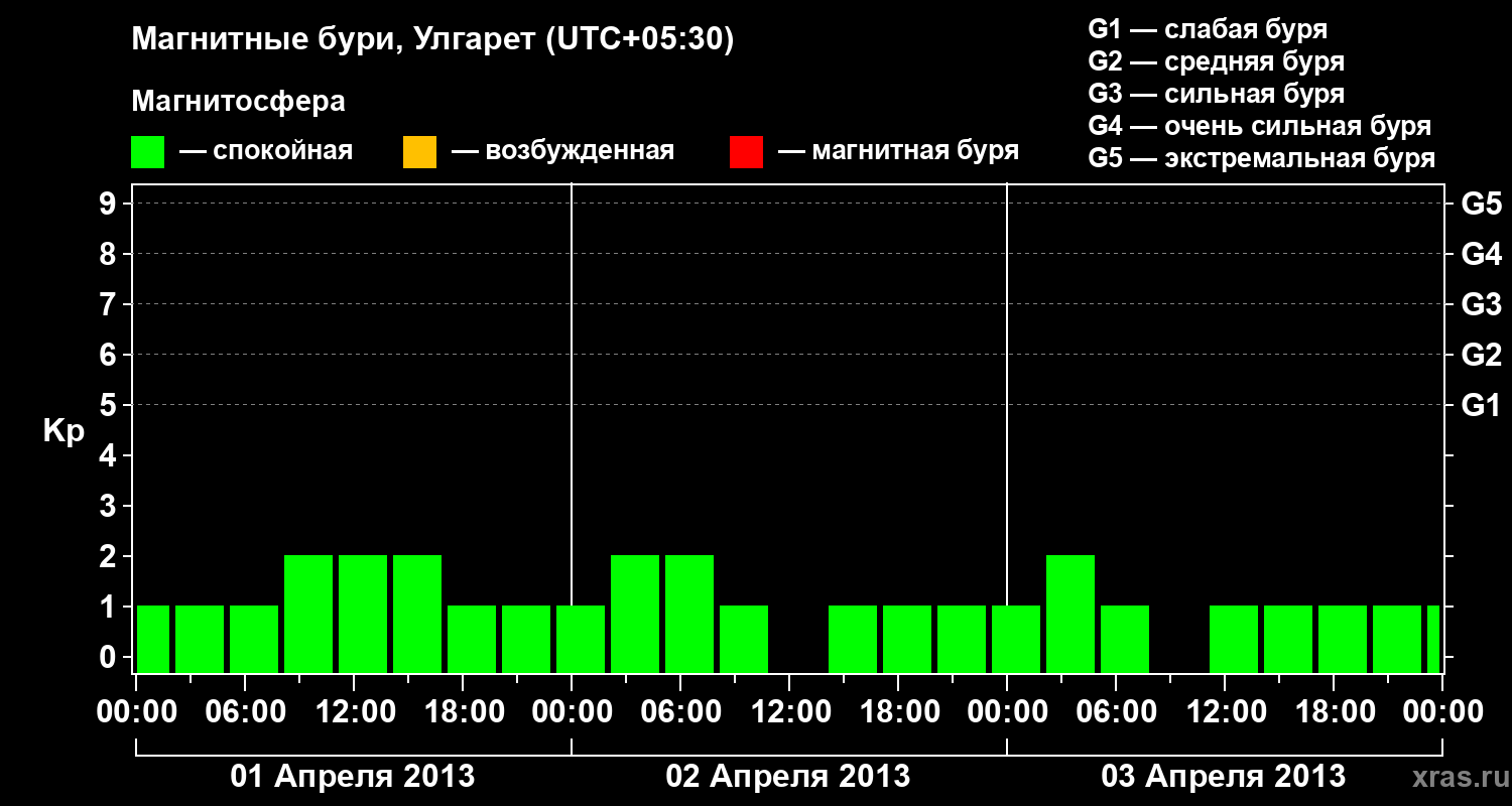 Магнитные бури в Улгарете — 3 апреля 2013 года