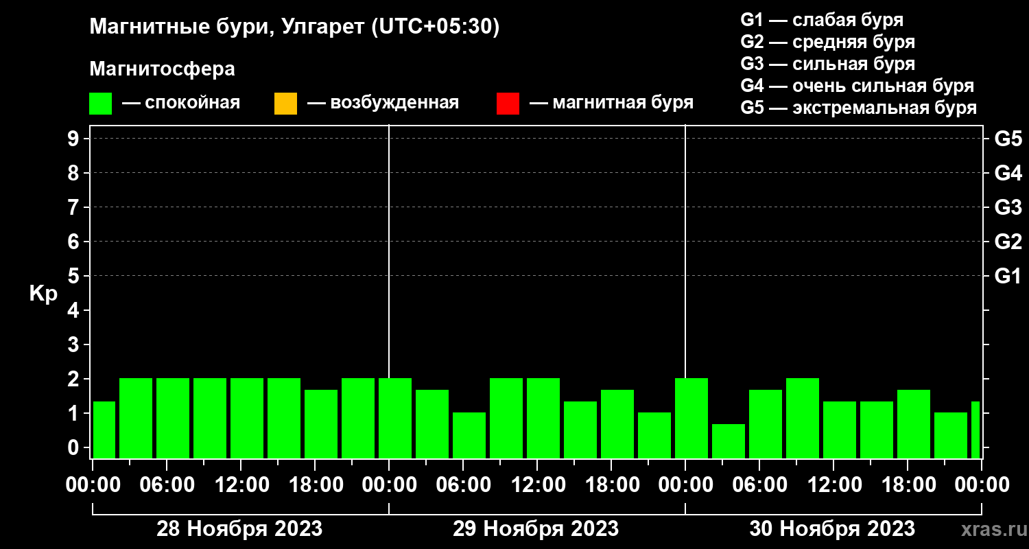 Магнитные бури в Улгарете 30 ноября 2023 года