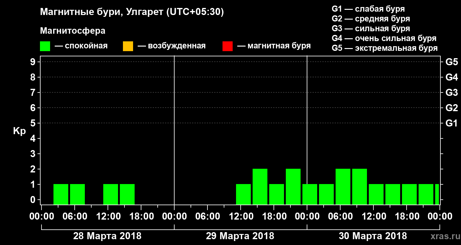 Магнитные бури в Улгарете 30 марта 2018 года