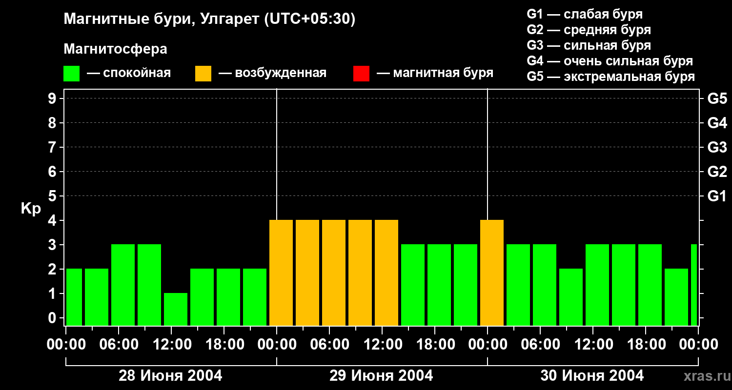 Магнитные бури в Улгарете — 30 июня 2004 года