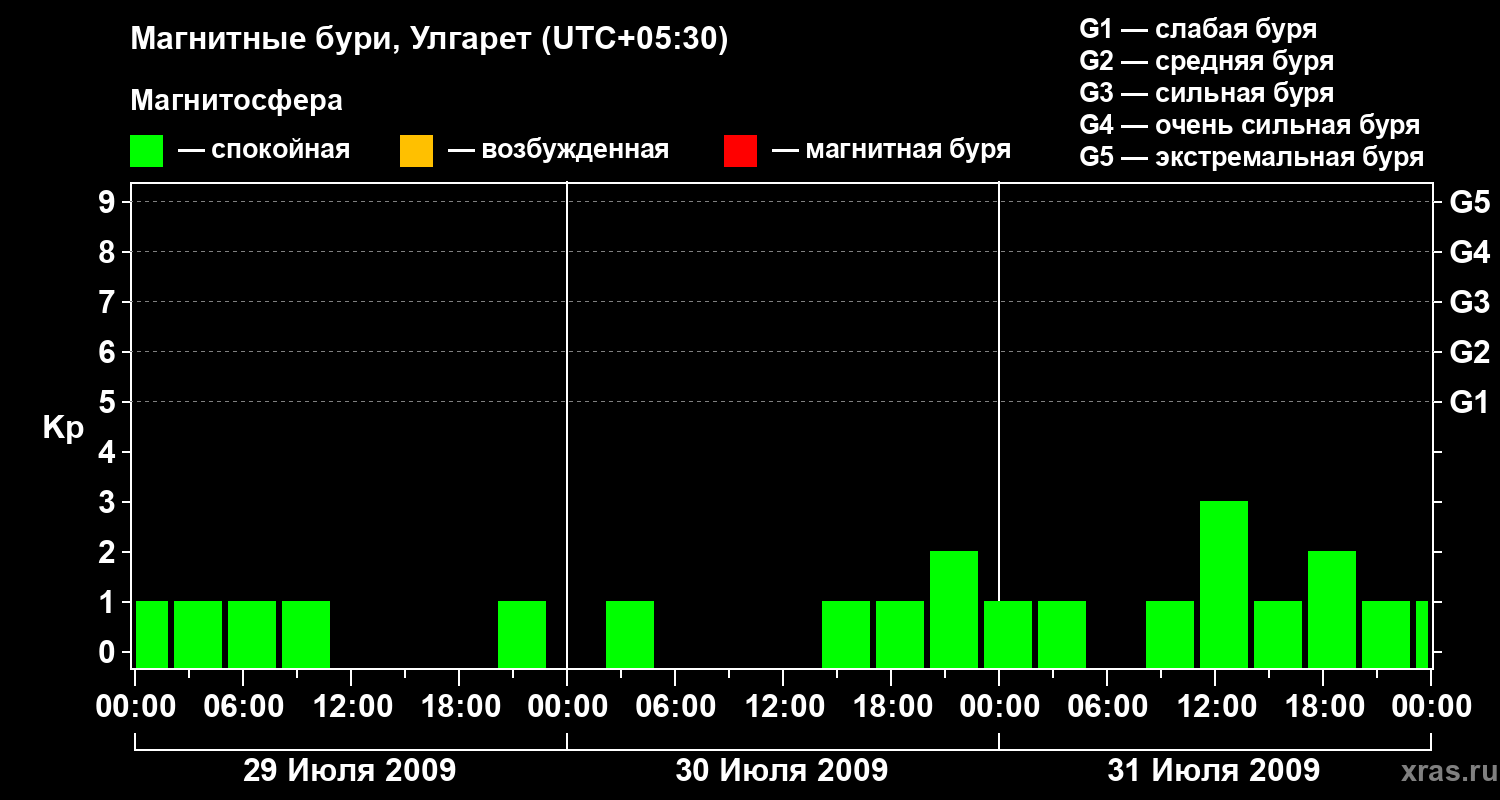 Магнитные бури в Улгарете — 31 июля 2009 года
