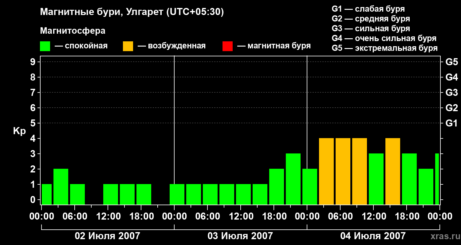 Магнитные бури в Улгарете — 4 июля 2007 года