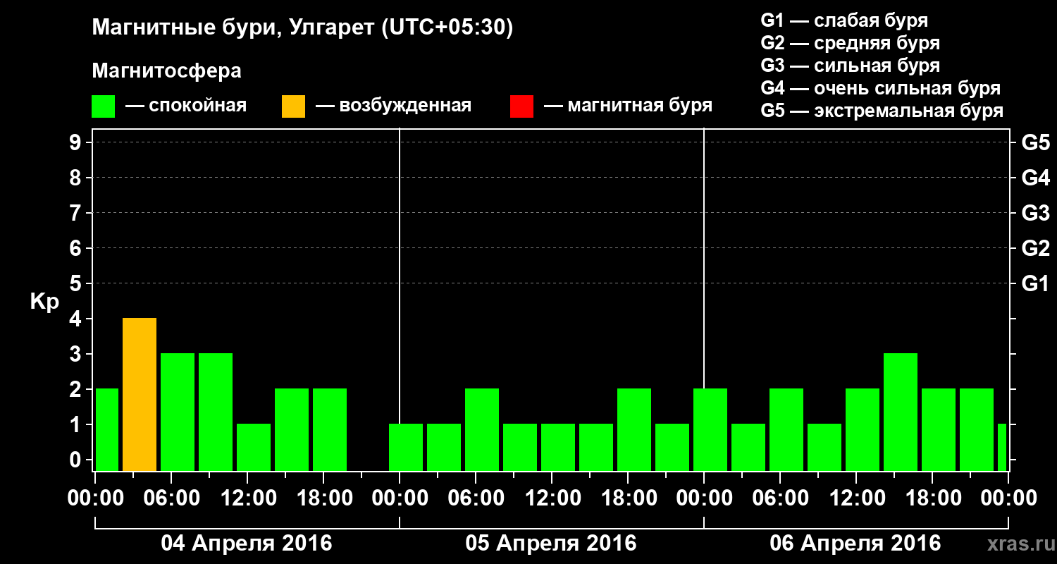Магнитные бури в Улгарете — 6 апреля 2016 года