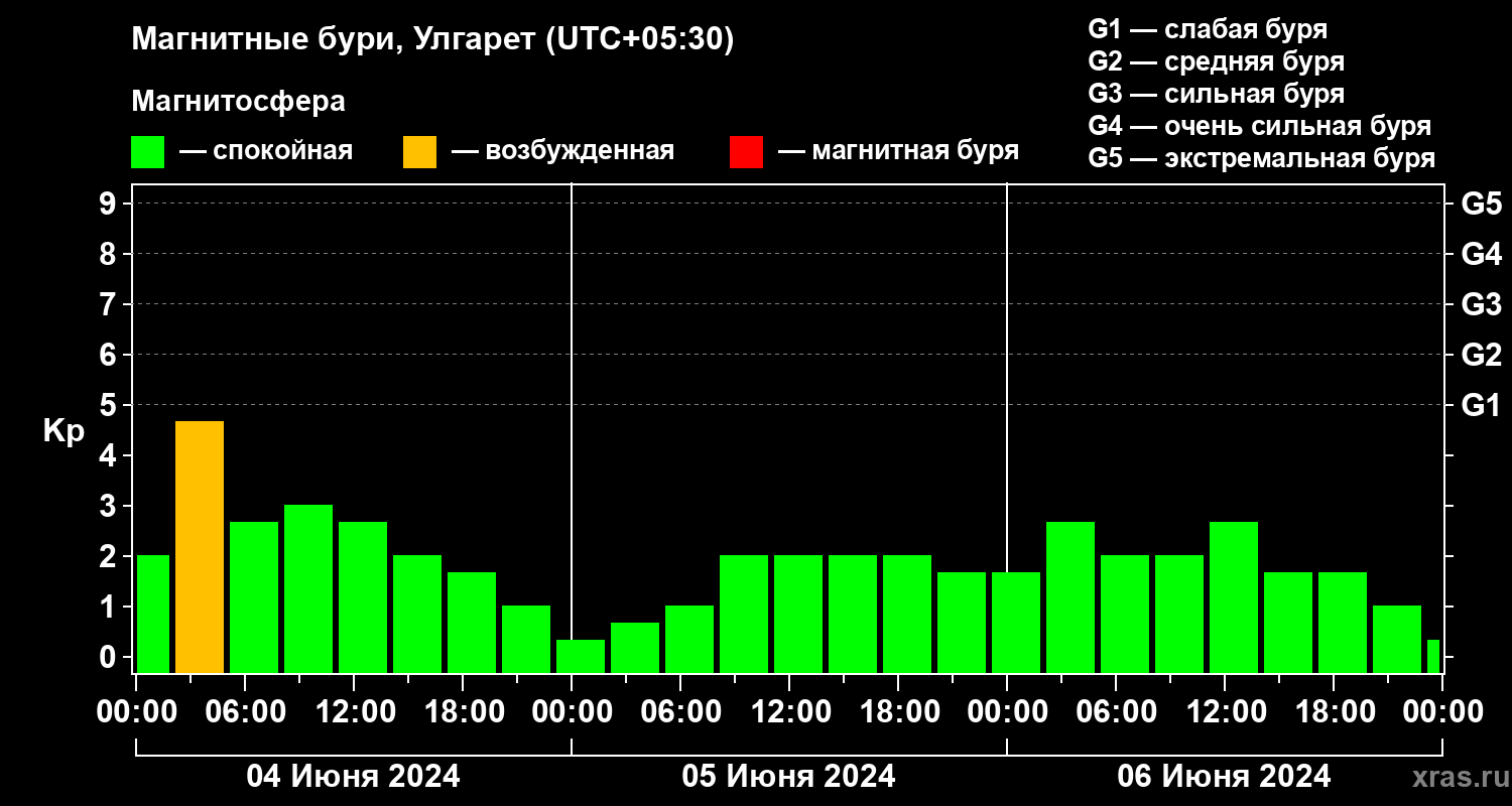 Магнитные бури в Улгарете — 6 июня 2024 года