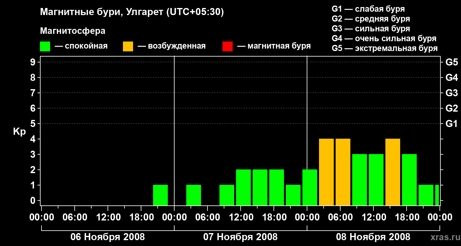 Магнитные бури в Улгарете — 8 ноября 2008 года