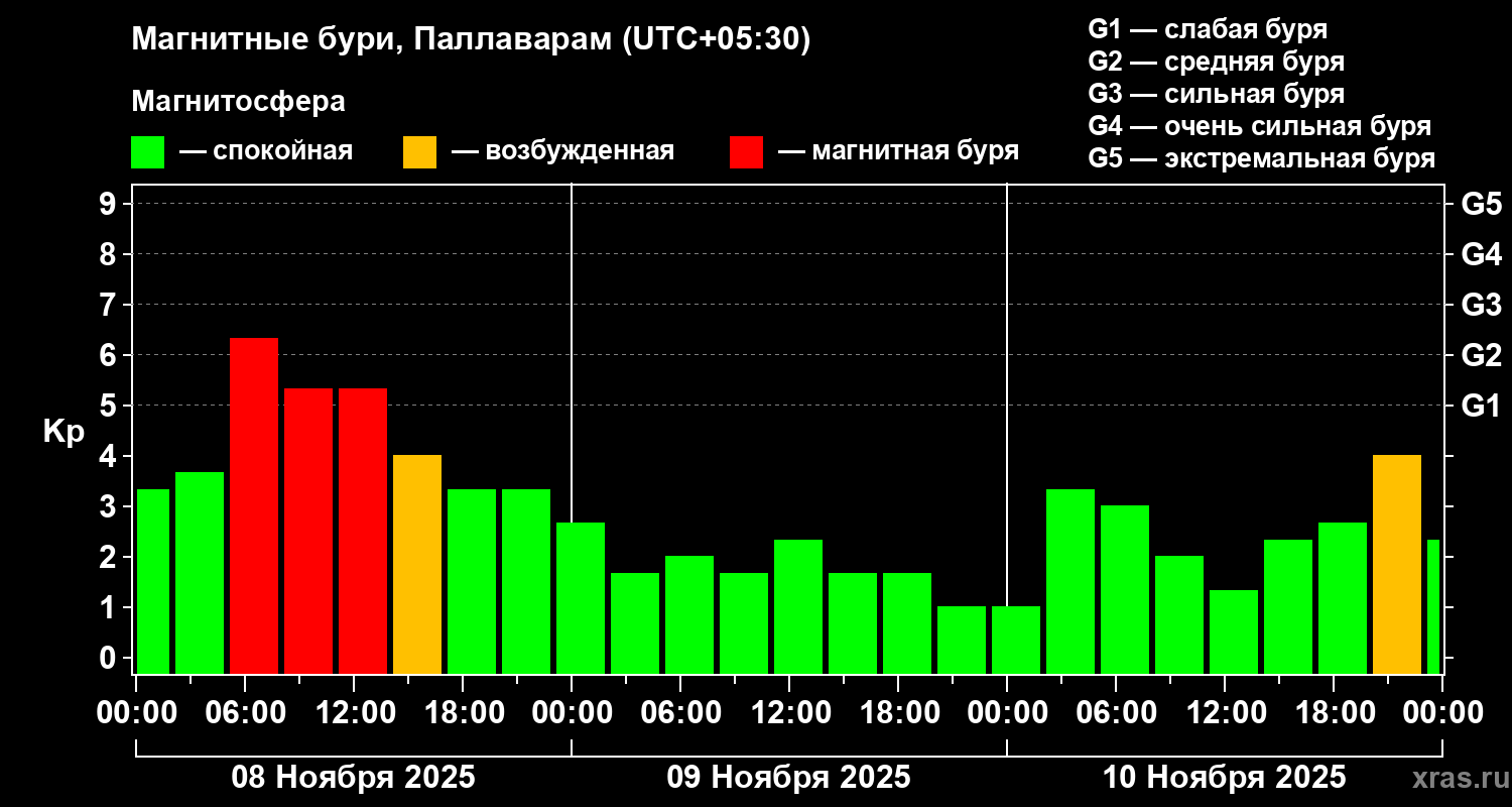 Магнитные бури в Паллавараме — 10 ноября 2025 года