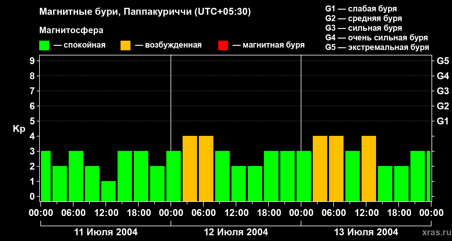 Магнитные бури Паппакуриччи 13 июля 2004 года