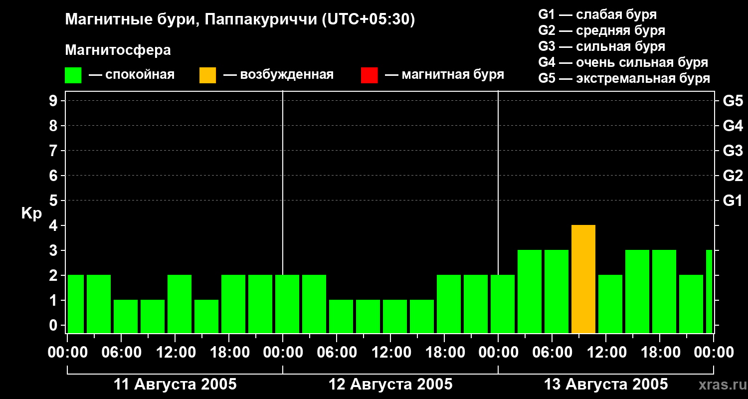 Магнитные бури Паппакуриччи 13 августа 2005 года