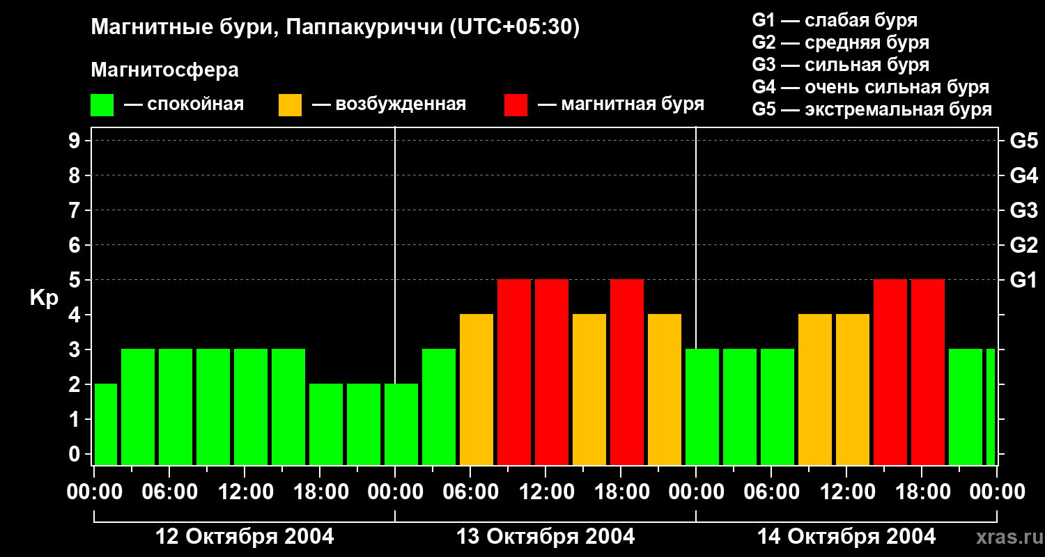 Магнитные бури Паппакуриччи 14 октября 2004 года