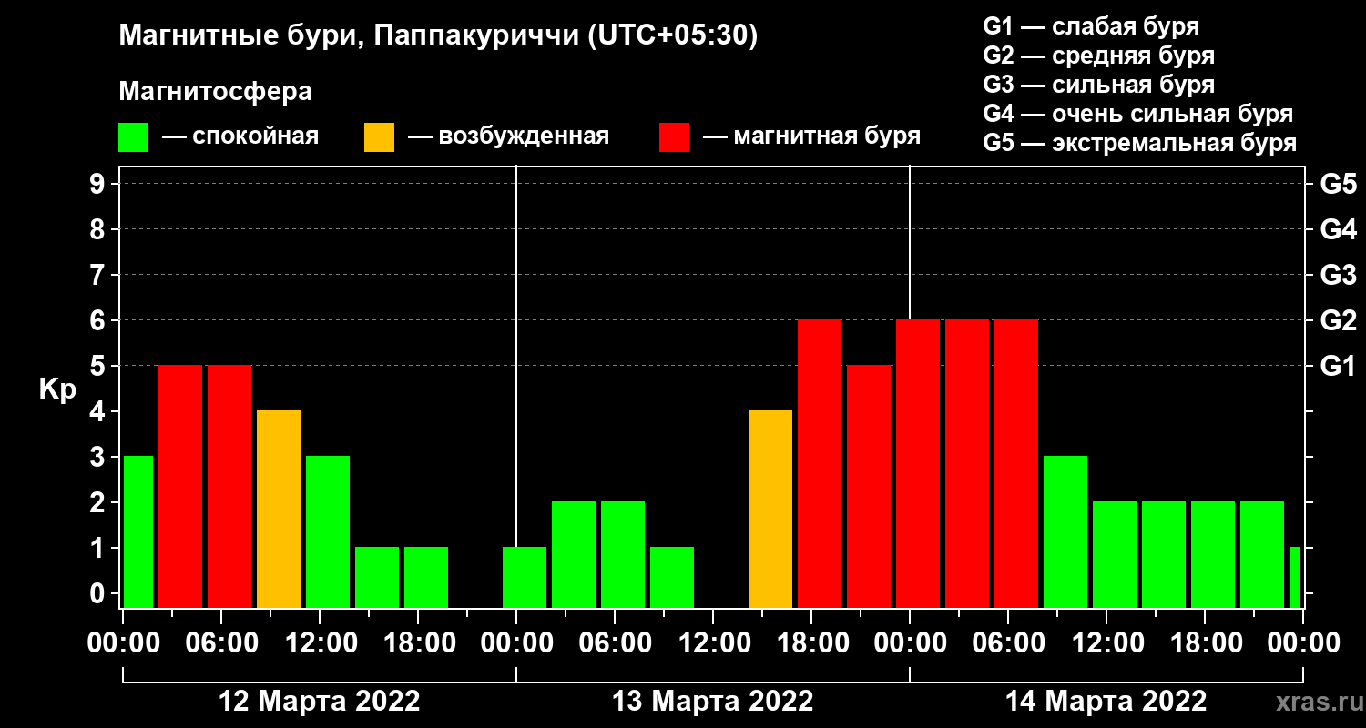 Магнитные бури Паппакуриччи 14 марта 2022 года